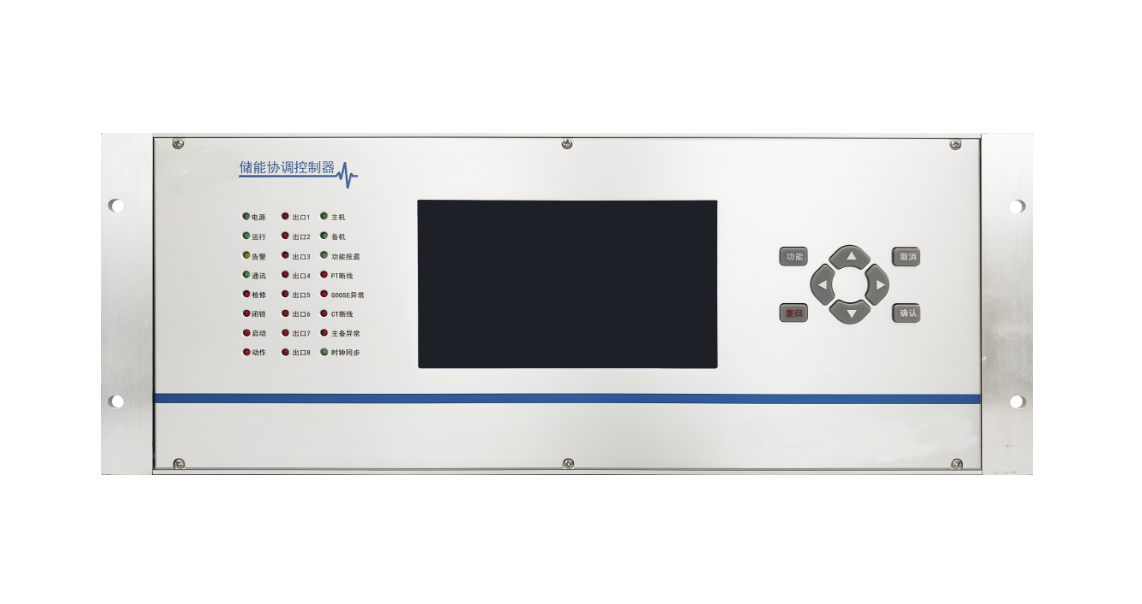储能协调控制器是一种具备监测并网点的电压、频率和功率,可接受调度和电化学储能电站监控系统的调控指令,对储能电站全站PCS统一快速协调控制,实现整站一次调频、动态无功调压等控制功能的装置。储能协调 控制器安装于储能电站,位于EMS(储能监控系统)与 PCS(储能变流器)之间,主要用于协调控制储能电站的多台 PCS,实现快速功率跟踪响应、辅助调频、辅助调压等高级控制功能。可以完成对储能电站所有PCS的快速同步调节,大大提高储能电站在一次调频、源网荷互动、动态无功电压响应等方面的性能,保证电网的安全稳定运行。作为储能系统的指挥中枢,协调控制器是储能电站的核心设备,肩负着电站设备功率协调控制和信息交互等作用。